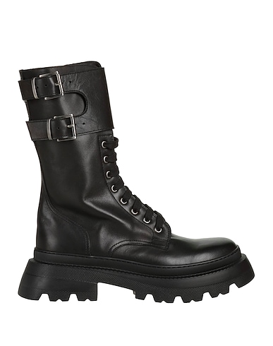 chunky boots, leather, nappa leather, buckle, solid color, leather lining, zipper fastening, lace-up, round toe, square heel, rubber sole, contains non-textile parts of animal origin