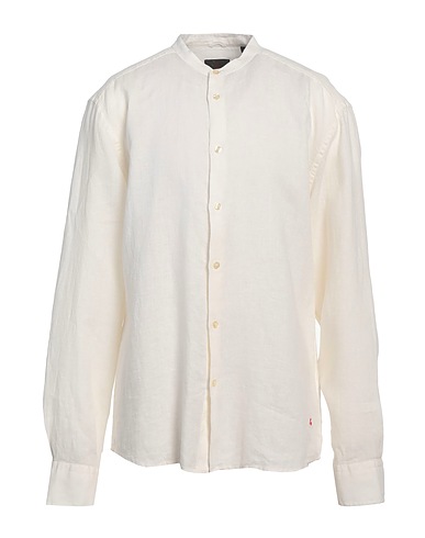 regular-fit shirt, woven, solid color, brand logo, mandarin collar, long sleeves, button fastenings, this brand runs small