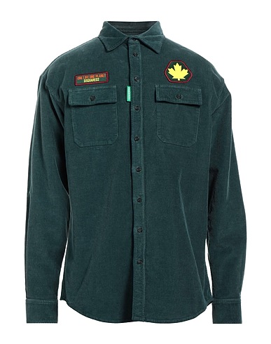regular-fit shirt, corduroy, solid color with appliqués, brand logo, embellished, classic collar, long sleeves, buttoned cuffs, button fastenings, two chest pockets