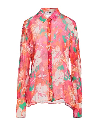 shirt, crepe, hawaiian-print, no appliqués, classic collar, long sleeves, button fastenings