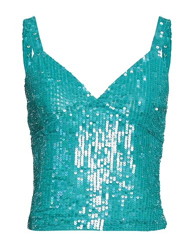 top, tulle, solid color with appliqués, sequins, deep neckline, sleeveless, stretch