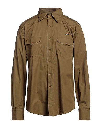 woven, brand logo, solid color, classic collar, long sleeves, buttoned cuffs, button fastenings, two breast pockets, safari shirt, small sized