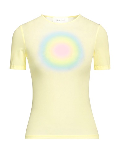 synthetic jersey, crystals, multicolor, crewneck, short sleeves, without pockets, stretch, printed t-shirt