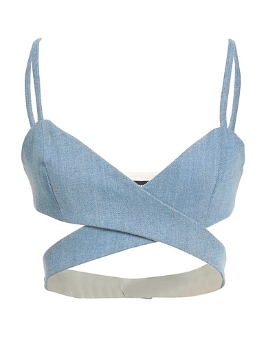 denim, open back, solid color, deep neckline, sleeveless, no pockets, crop top