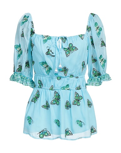 chiffon, embroidered, multicolor, square neckline, short sleeves, no pockets, peplum top