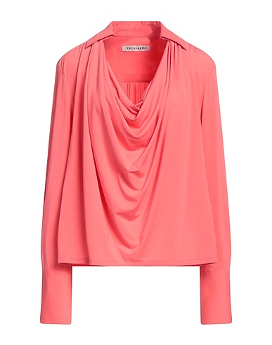jersey, no appliqués, solid color, draped neckline, long sleeves, multipockets, stretch, top