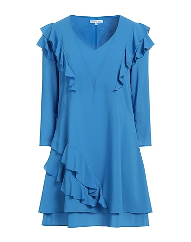 flared dress, crepe, solid color, ruffles, brand logo, v-neck, long sleeves, fully lined, without pockets, hand wash or dry clean, do not bleach, do not tumble dry