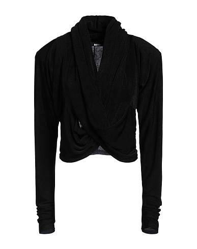 knitted, lightweight knit, no appliqués, solid color, draped neckline, long sleeves, with shoulder pad, snap fastenings, no pockets, stretch, machine wash or dry clean, tumble dry, do not bleach