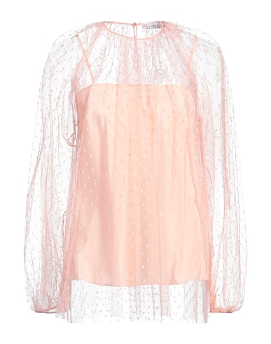 top, tulle, solid color, gathered, crewneck, long sleeves, slip to line, dry clean, do not bleach, do not tumble dry