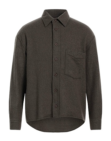 flannel, no appliqués, solid color, classic collar, long sleeves, button fastenings, one chest pocket, dry clean, do not bleach, do not tumble dry, overshirt