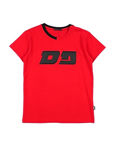 jersey, solid color with appliqués, brand logo, crewneck, short sleeves, stretch, hand wash, do not bleach, do not tumble dry, this brand runs small