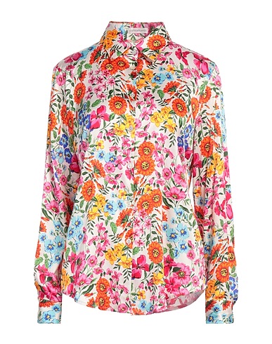 long shirt, satin, no appliqués, floral-print, classic collar, long sleeves, buttoned cuffs, button fastenings, without pockets, stretch, machine wash or dry clean, do not bleach, do not tumble dry