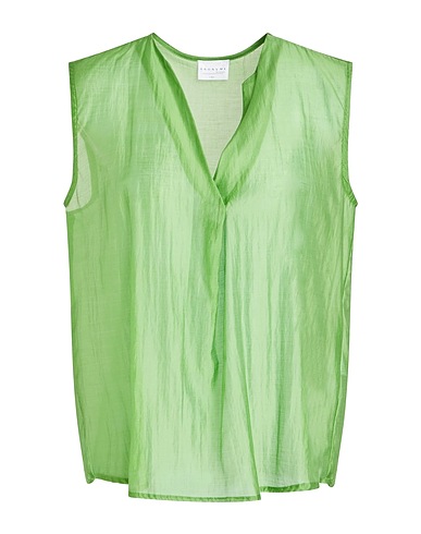 top, organza, solid color, no appliqués, v-neck, sleeveless, machine wash or dry clean, do not bleach, do not tumble dry
