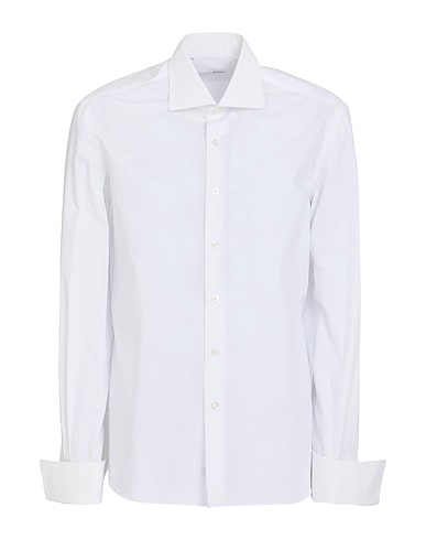 regular-fit shirt, woven, solid color, brand logo, classic collar, long sleeves, french cuffs, button fastenings, machine wash or dry clean, do not bleach, do not tumble dry
