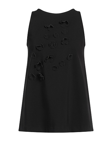 top, jersey, solid color, floral appliqués, crewneck, sleeveless, zipper fastening, stretch, hand wash, do not bleach, do not tumble dry