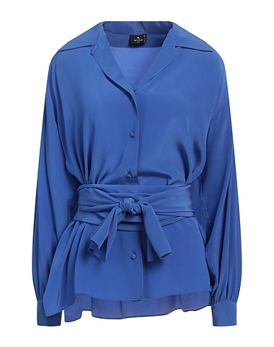 shirt, crepe, solid color, bow-detailed, camp collar, long sleeves, buttoned cuffs, button fastenings, dry clean, do not bleach, do not tumble dry