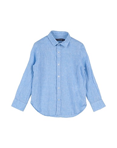linen, solid color, embroidered logo, classic collar, long sleeves, button fastenings, machine wash or dry clean, do not bleach, do not tumble dry, this brand runs small