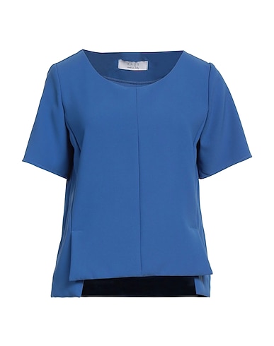 top, woven, solid color, no appliqués, crewneck, short sleeves, side slit hemline, stretch, machine wash, do not wash, do not bleach