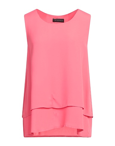 top, crepe, solid color, no appliqués, crewneck, sleeveless, fully lined, machine wash or dry clean, do not bleach, do not tumble dry