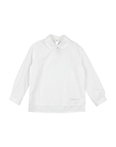 woven, solid color, brand logo, crystals, peter pan collar, long sleeves, button fastenings, hand wash or dry clean, do not bleach, do not tumble dry