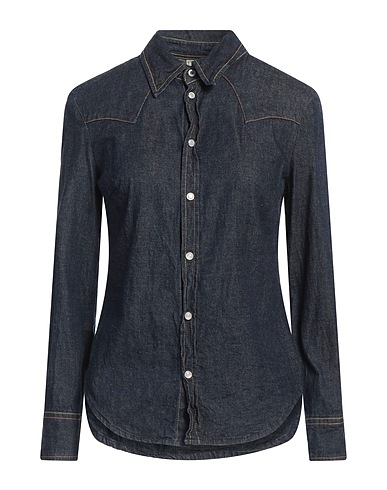 denim, solid color, no appliqués, dark wash, classic collar, long sleeves, snap-fastening cuffs, snap fastenings, machine wash, do not bleach, do not tumble dry