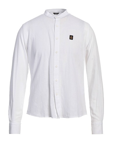 slim-fit shirt, woven, solid color, embroidered logo, mandarin collar, long sleeves, buttoned cuffs, button fastenings, machine wash, do not bleach, do not tumble dry