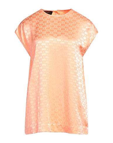 top, satin, jacquard, logo-print, brand logo, crewneck, short sleeves, 1 button, dry clean, do not bleach, do not tumble dry