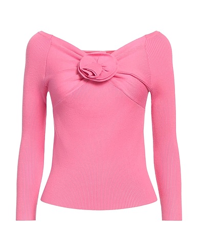 knitted, lightweight knit, solid color with appliqués, floral appliqués, scoop