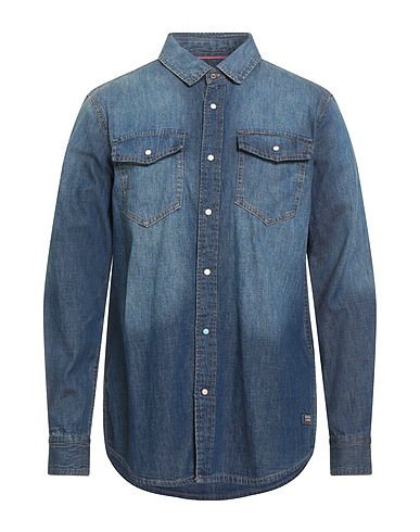 denim, faded, solid color, brand logo, dark wash, classic collar, long sleeves, snap fastenings, two chest pockets, machine wash, do not bleach, tumble dry