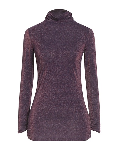 top, jersey, metallic, two-tone, gathered, turtleneck, long sleeves, raw-cut hem, stretch, hand wash, do not bleach, do not tumble dry, do not iron