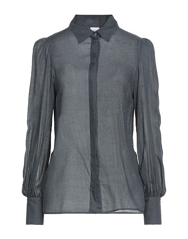 shirt, woven, solid color, no appliqués, classic collar, long sleeves, buttoned cuffs, snap fastenings, contains non-textile parts of animal origin, dry clean, do not bleach, do not tumble dry