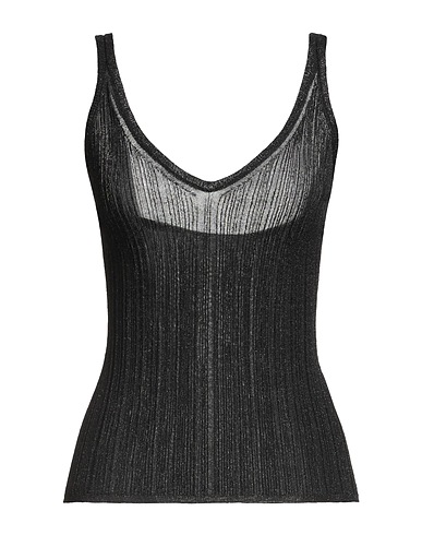 top, ribbed-knit, metallic, lightweight knit, solid color, no appliqués, deep neckline, sleeveless, hand wash or dry clean, do not bleach, do not tumble dry