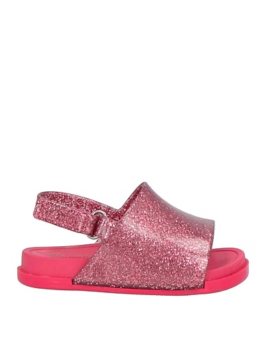 rubber, glittered, no appliqués, solid color, rubber lining, velcro fastening, round toe, flat, rubber sole, open sandals