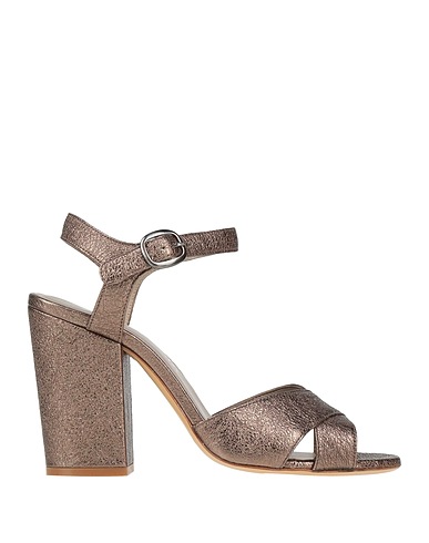 ankle strap sandals, leather, metallic, solid color, no appliqués, leather lining, buckle-fastening ankle strap, round toe, square heel, leather sole, contains non-textile parts of animal origin, amp up the glamour with chic designer party outfits for your next event or fun night out