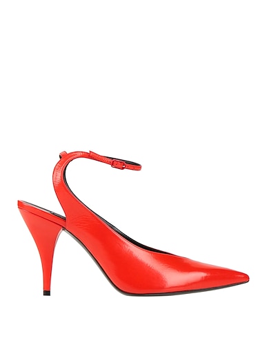 pumps, leather, patent-effect, solid color, no appliqués, leather lining, buckle-fastening ankle strap, pointed toe, cone heel, leather sole, contains non-textile parts of animal origin