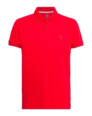 piqué, stretchy fabric, solid color, embroidered logo, buttoned neckline, short sleeves, side slit hemline, machine wash or dry clean, do not bleach, do not tumble dry