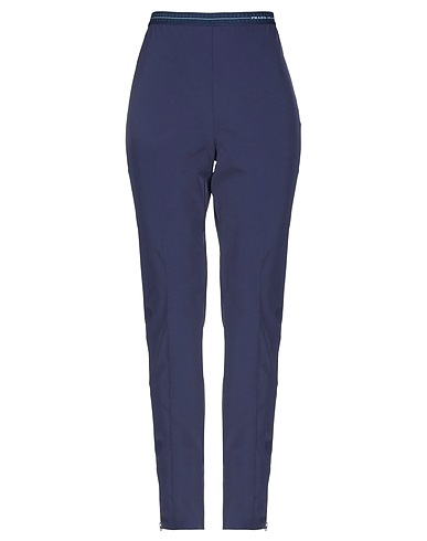 techno fabric, logo, solid color, high waisted, regular fit, tapered leg, zip, no pockets, stretch, large sized