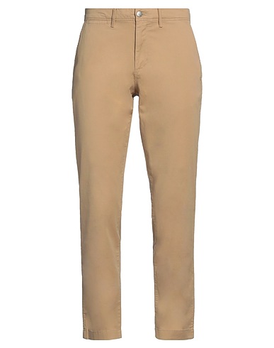 chino pants, twill, solid color, embroidered logo, mid rise, belt loops, tapered leg, slim fit, 1 button, zipper fastening, multipockets, stretch, machine wash, do not bleach, do not tumble dry