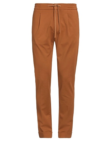 jersey, brand logo, solid color, mid rise, drawstring waist, straight leg, regular fit, zipper closure, hook-and-eye closure, cuffed hems, multipockets, stretch, pants