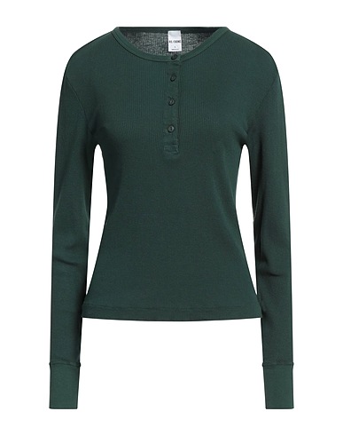henley t-shirt, knitted, ribbed, lightweight knit, solid color, no appliqués, crewneck, long sleeves, button fastenings