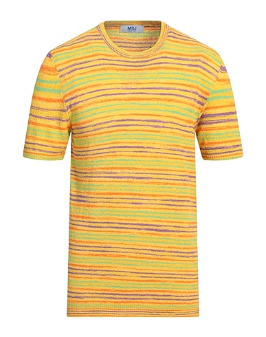 knitted, lightweight knit, no appliqués, multicolor pattern, stripes, crewneck, short sleeves, no pockets