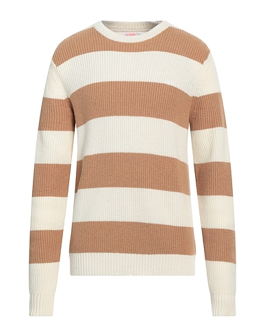 knitted, medium-weight knit, brand logo, stripes, crew neck, long sleeves, no pockets
