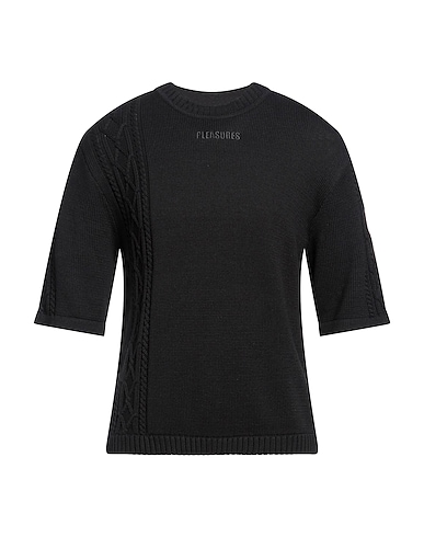 knitted, lightweight knit, brand logo, solid color, crew neck, short sleeves, no pockets