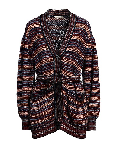 knitted, lightweight knit, belt, multicolor, v-neck, long sleeves, button closing, multipockets