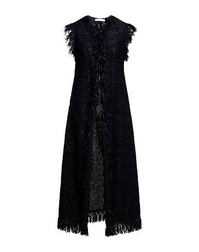 knitted, lightweight knit, fringes, solid color, deep neckline, sleeveless, no pockets