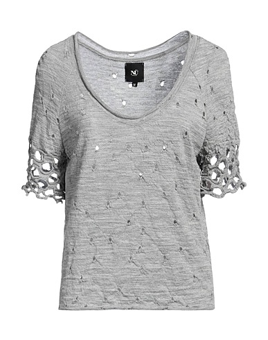 wool, lightweight knit, perforated, mélange, no appliqués, solid color, crewneck, short sleeves, without pockets, hand wash, do not bleach, tumble dry