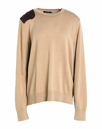 knitted, coated fabric, lightweight knit, embellished, solid color with appliqués, crewneck, long sleeves, machine wash or dry clean, do not bleach, do not tumble dry