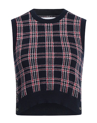 cashmere, lightweight knit, no appliqués, tartan pattern, crewneck, sleeveless, button fastenings, without pockets, dry clean, do not bleach, do not tumble dry