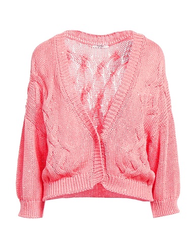 cable-knit, lightweight knit, solid color with appliqués, sequins, 3/4 length sleeves, snap fastenings, machine wash or dry clean, do not bleach, do not tumble dry, this brand runs small