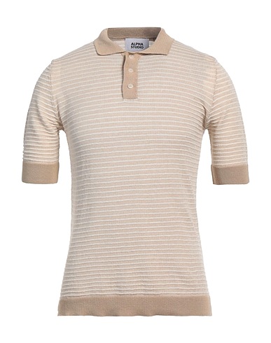 knitted, lightweight knit, striped, no appliqués, polo collar, short sleeves, button fastenings, contains non-textile parts of animal origin, hand wash or dry clean, do not bleach, do not tumble dry